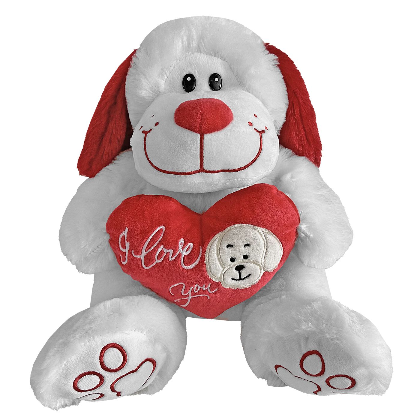 Αρκουδάκι Λευκό Μακριά Αυτιά και Κόκκινη Καρδιά 30cm