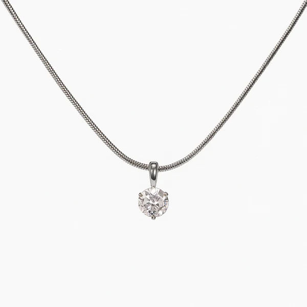 Κολιέ ασημί ατσάλι με στρόγγυλο zircon