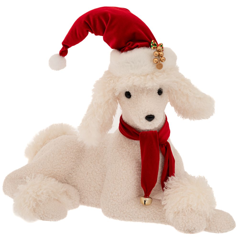 ΛΕΥΚΟΣ ΥΦΑΣΜΑΤΙΝΟΣ ΚΑΘΙΣΤΟΣ ΣΚΥΛΟΣ ΜΕ ΚΟΚΚΙΝΟ ΣΚΟΥΦΟ ΚΑΙ ΚΑΣΚΟΛ