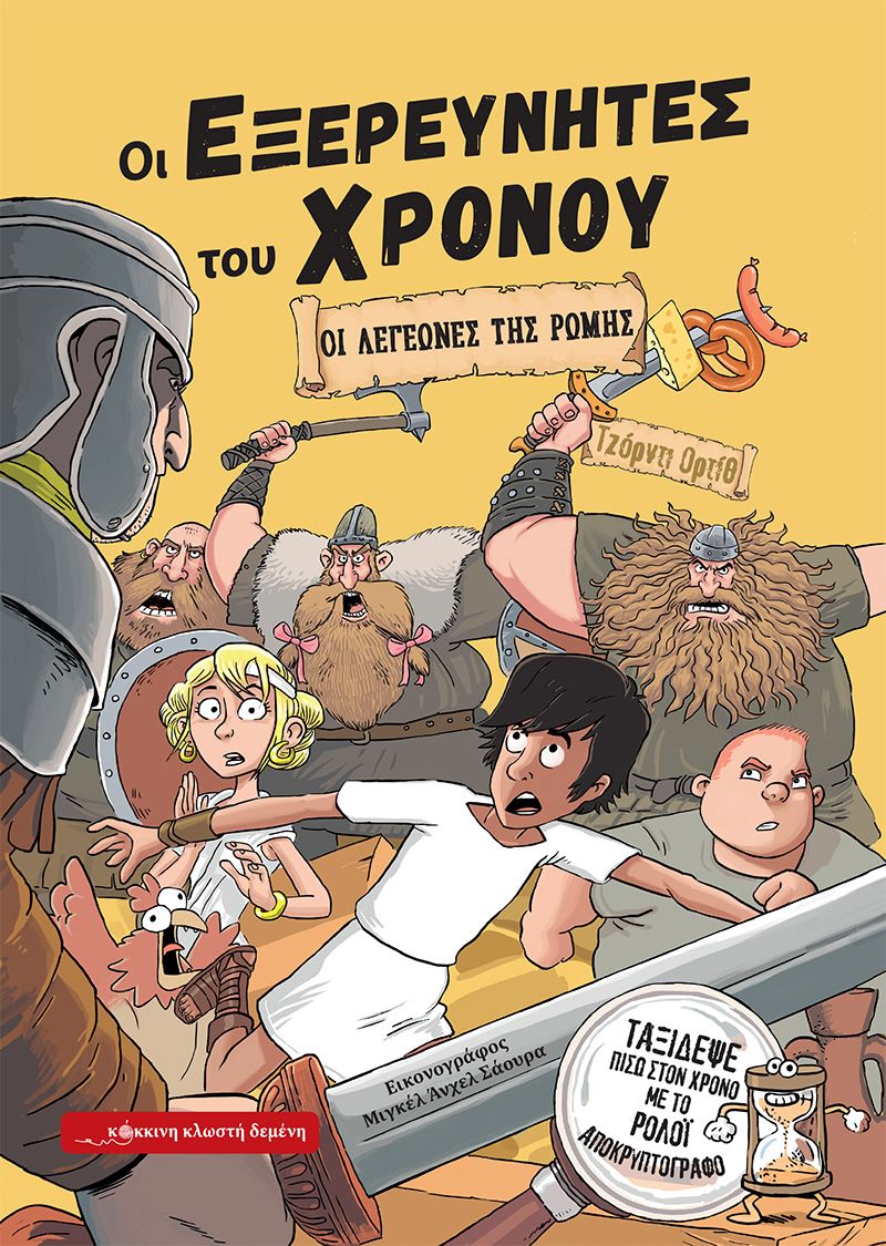 Το αδύνατο επρόκειτο να συμβεί ξανά. Οι περισσότεροι επιστήμονες έλεγαν ότι ΤΟ ΤΑΞΙΔΙ ΣΤΟΝ ΧΡΟΝΟ ήταν αδύνατο. Οι πιο τολμηροί σκέφτονταν ότι, θεωρητικά, ίσως να γινόταν να προκαλέσουν ένα ρήγμα στον ιστό του ΧΩΡΟΧΡΟΝΟΥ για να ρίξουν μια ματιά σε κάποια άλλη στιγμή της ιστορίας. Ωστόσο, όλοι ήταν απολύτως σύμφωνοι ότι ποτέ, μα ποτέ, ποτέ των ποτών δε θα ήταν εφικτό να επισκεφθεί κάποιος μια άλλη εποχή. Κι όμως…! Ο Καθηγητής Εξυπνοσθένης ηγείται του σημαντικότερου επιστημονικού έργου στην ιστορία! Η Κριστίνα, ο Βίκτορας, ο Μιγκέλ, η Ίμπις και η Κάλι – ο ορνιθόσαυρος – θα ταξιδέψουν πίσω στο χρόνο για να συγκεντρώσουν αντικείμενα από τους πιο συναρπαστικούς αρχαίους πολιτισμούς. Αλλά ο κακός Μαλέφικο Δουραδόρ, ο άσπονδος εχθρός του Καθηγητή, θα μετατρέψει κάθε αποστολή σε μια περιπέτεια… πολύ επικίνδυνη! Εμπρός, με ένα ρολόι θα ταξιδέψετε και εσείς στο παρελθόν… Οι Εξερευνητές του Χρόνου θα επισκεφθούν την αρχαία Ρώμη για να προσπαθήσουν να αποκτήσουν το πιο καλά προστατευμένο έμβλημα των ρωμαϊκών λεγεώνων, έναν ρωμαϊκό αετό! Θα συναντήσουν όμως κάποια απροσδόκητα γεγονότα… Θα καταφέρουν να ολοκληρώσουν την πρώτη τους αποστολή; Κάθε βιβλίο μας επιτρέπει να απολαμβάνουμε ένα συναρπαστικό ταξίδι στο χρόνο με το Βίκτορα, τη Χριστίνα, την Ίμπις και τη Κάλι. Οι αναγνώστες θα βρουν μερικές ερωτήσεις που τους επιτρέπουν να ανακαλύψουν ιστορικά αξιοπερίεργα για αρχαίους πολιτισμούς. Για να το κάνουν αυτό, θα πρέπει να χρησιμοποιήσουν το ρολόι της ώρας , που περιλαμβάνεται στο βιβλίο, για να αποκρυπτογραφήσουν τον αριθμό της σελίδας που κρύβεται πίσω από ένα κόκκινο φόντο και έτσι να μπορούν να ταξιδέψουν στο χρόνο για να ανακαλύψουν απίστευτα ιστορικά γεγονότα.