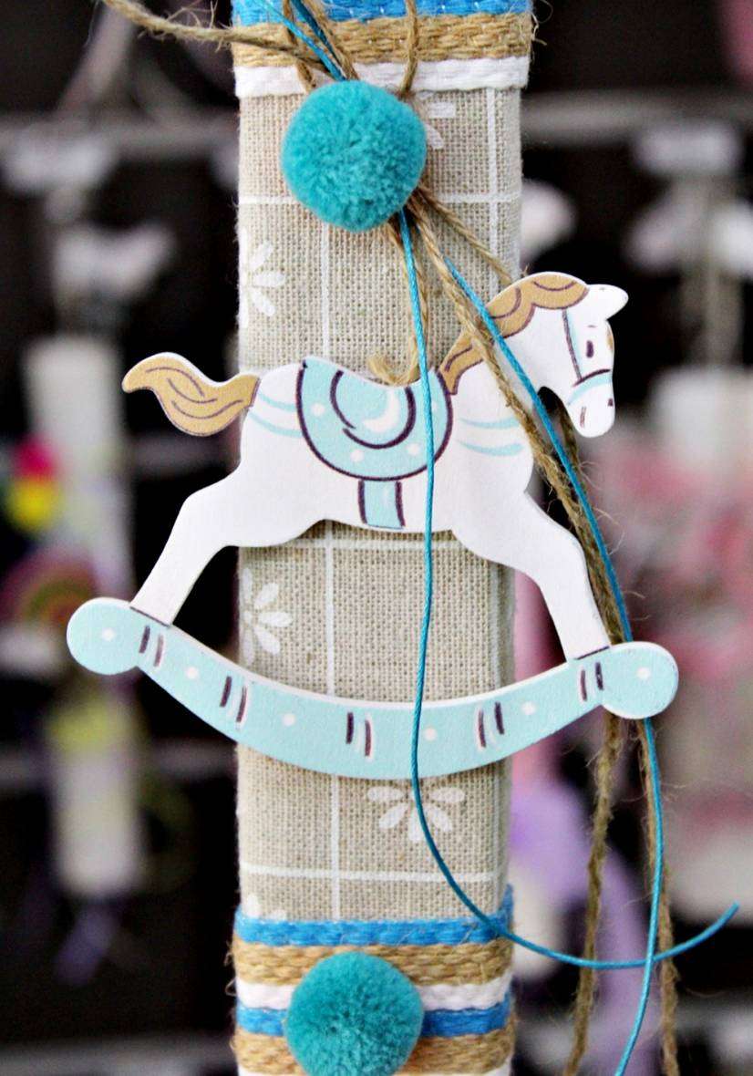 Πασχαλινή Λαμπάδα αλογάκι μπλε + πομ πομ Ύψος 25