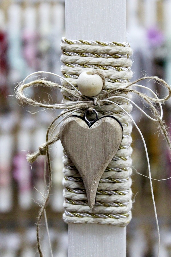 Πασχαλινή λαμπάδα Καρδιά Ξύλινη Καφέ Ύψος 25