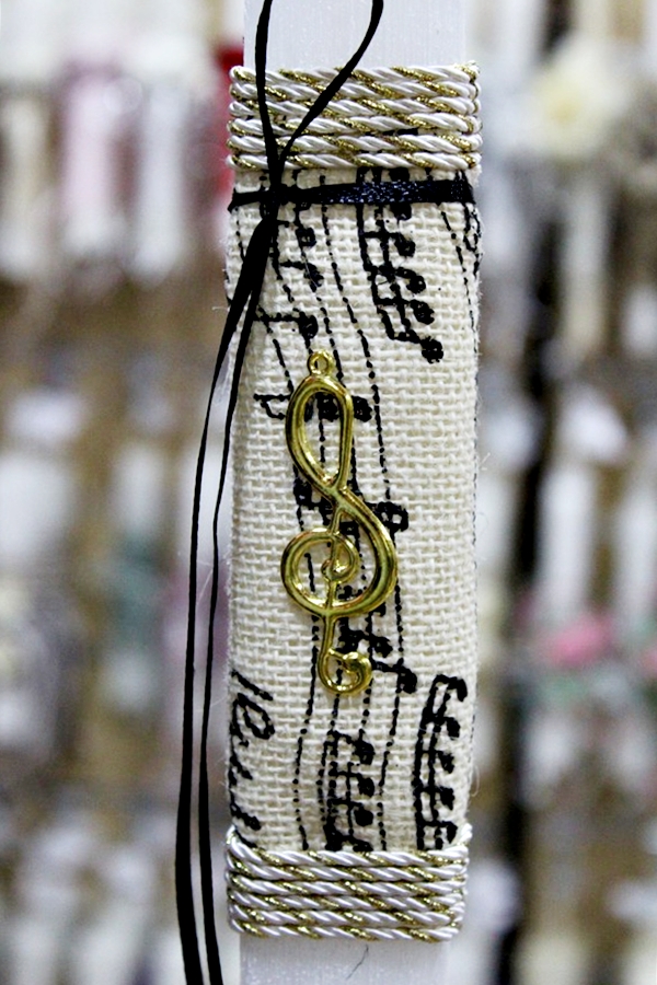 Πασχαλινή λαμπάδα Νότα Χρυσή-Ύφασμα Ύψος 25