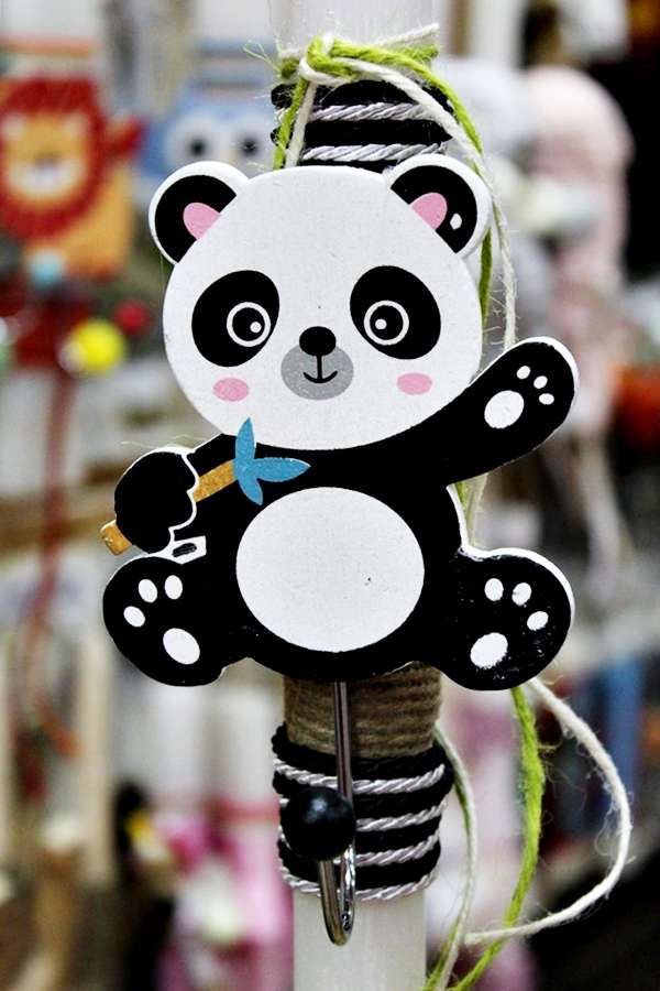 Πασχαλινή λαμπάδα Ξύλινη κρεμάστρα panda 25x2.5cm