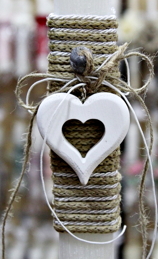 Πασχαλινή λαμπάδα 25Δ021 Καρδιά Ξύλινη Λευκή Τρύπα Ύψος 25