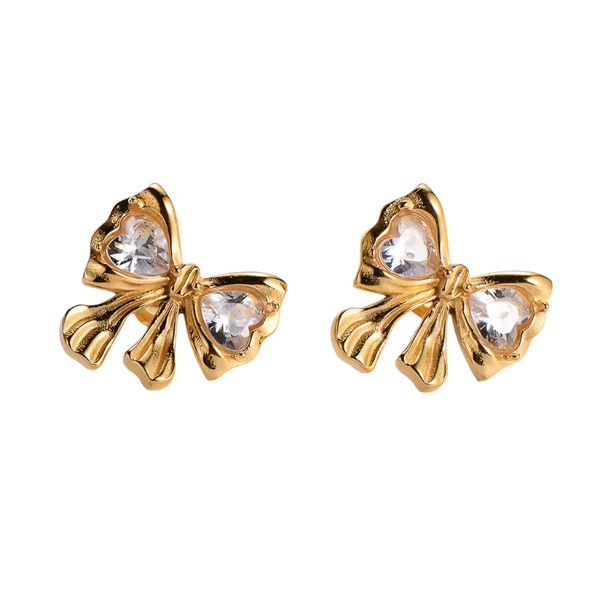 Σκουλαρίκια επιχρυσωμένο ατσάλι φιόγκος με κρύσταλλα