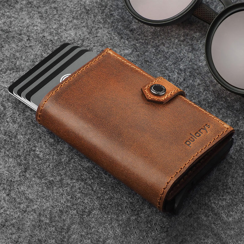HIKER: • Διάσταση: 7 x 10 x 2,5 cm • Δερμάτινη τσέπη για χαρτονομίσματα • Xώρος για 8 κάρτες • Kούμπωμα • RFID protection Ένα μικρό πορτοφόλι με ασυνήθιστο εσωτερικό, κατασκευασμένο από δέρμα Original Legendary Vintage Saddle. Χάρη στην τεχνολογία αποκλεισμού RFID που χρησιμοποιείται στη σχεδίαση του πορτοφολιού, τα ευαίσθητα δεδομένα και τα χρήματα της πιστωτικής σας κάρτας είναι απολύτως ασφαλή και προστατεύονται από κλοπή. Ο ειδικός μηχανισμός σταδιακής εξαγωγής κάρτας σας επιτρέπει να φτάσετε γρήγορα σε αυτό που αναζητάτε. Αν ψάχνετε για ένα στιβαρό και κομψό πορτοφόλι - αυτό είναι το κατάλληλο για εσάς. Το Original Legendary Vintage Saddle Leather είναι ένα υλικό που χρησιµοποιείται εδώ και αιώνες στην κατασκευή σελών υψηλής ποιότητας. Σκουραίνει µε φυτικές ουσίες και αποκτά τις υδατοαπωθητικές του ιδιότητες από τη χρήση ζεστού κεριού, το οποίο διεισδύοντας στη δοµή του, προστατεύει το δέρµα από το νερό ενώ συγκρατεί την ελαστικότητά του. Με τον καιρό και µε τη χρήση αλλάζει η όψη του δέρµατος και το χρώµα του. Αλλάζει απόχρωση στις πτυχές παίρνοτας µια απαλή, φυσική πατίνα. Επιπλέον, το δέρµα γίνεται περισσότερο εύπλαστο και ανθεκτικό όσο περισσότερο χρησιµοποιείται. Το Original Legendary Vintage Saddle Leather βραβεύεται για την ακατέργαστή του οµορφιά, ανθεκτικότητα και ευελιξία, γι’ αυτό χρησιµοποιείται όχι µόνο για σέλες, αλλά και για µια ολόκληρη σειρά δερµάτινων προϊόντων.