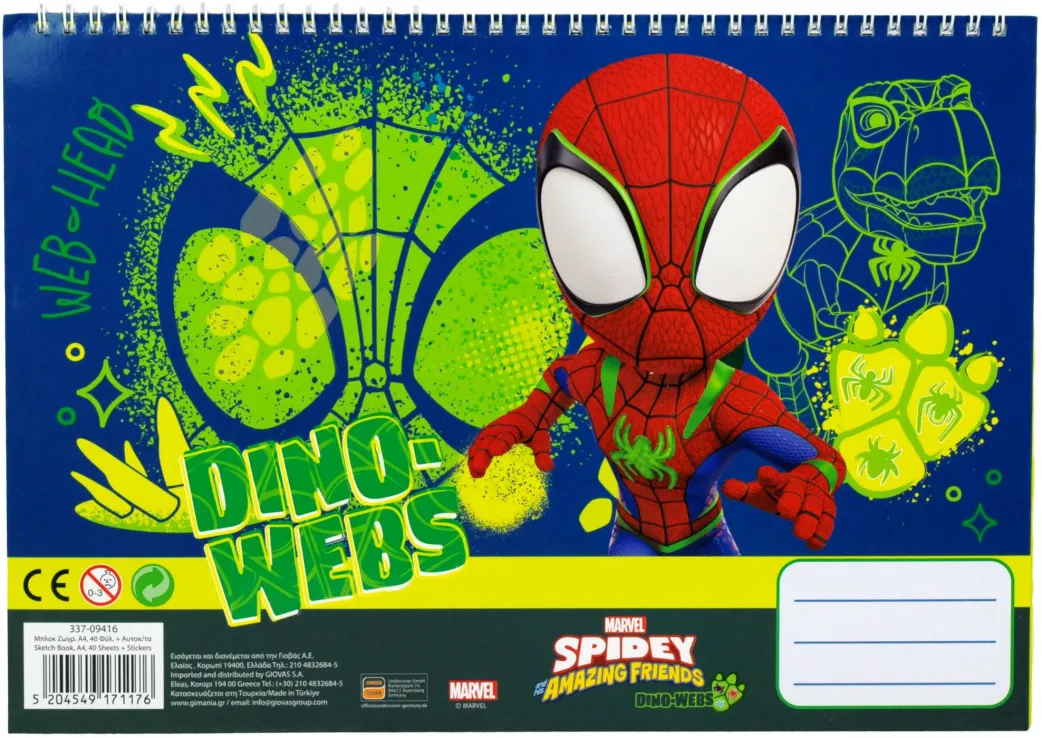 Spidey Dino Webs Μπλοκ Ζωγραφικής Α4+Stickers